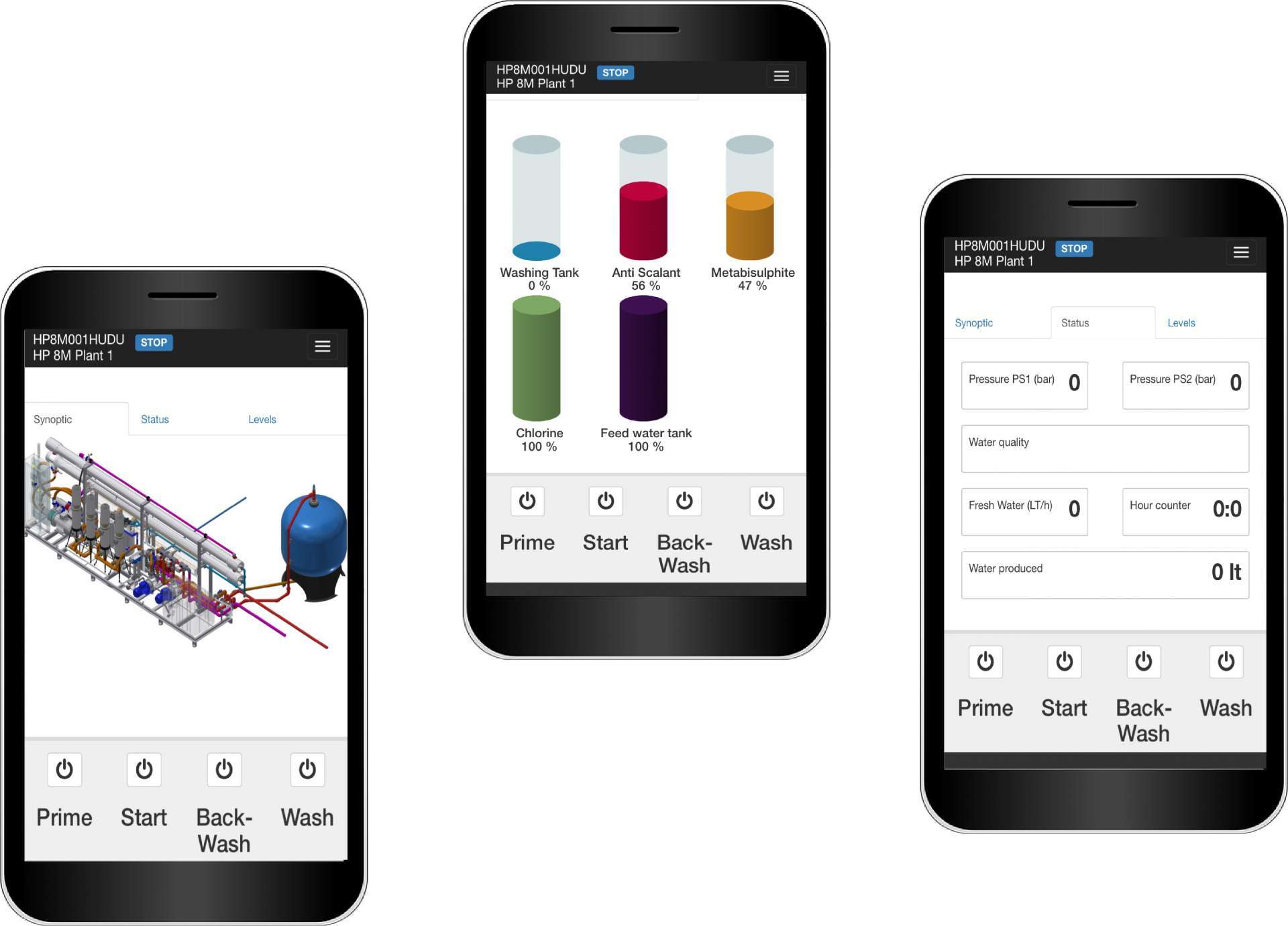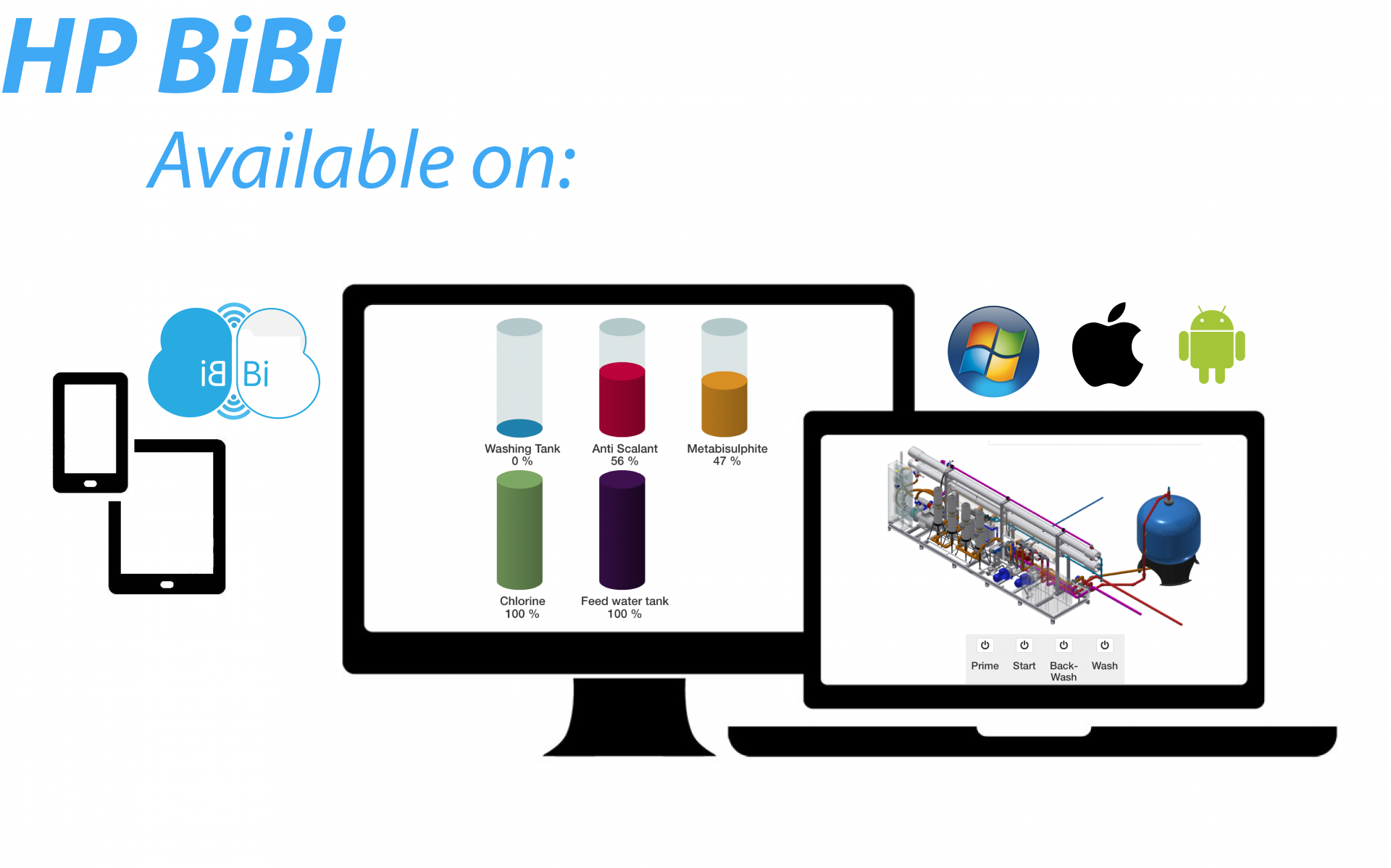 Bibi – ein System für die Bedienung der Entsalzungsanlage über einen Webbrowser. Der Nutzer kann von einem entfernten Standort aus die Anlage bedienen und bewachen. Dieses Modul ist sehr nützlich da im Falle von auftretenden Problemen ein zugelassener HP Techniker jederzeit Zugriff auf die Anlage hat, den Schaden diagnostizieren und in den meisten Fällen auch beheben kann. Mit dem Modul Bibi wird die Garantie auf die Anlage um 4 Jahre verlängert.